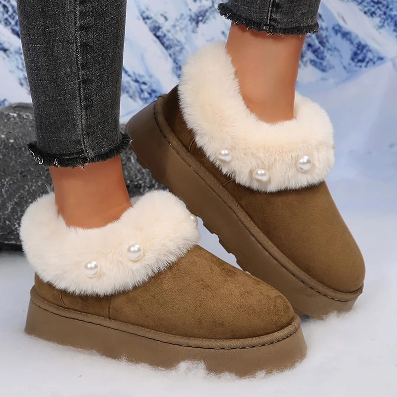 Botas Plataforma Piel Esponjosa Perlas Moda Tica Elegante