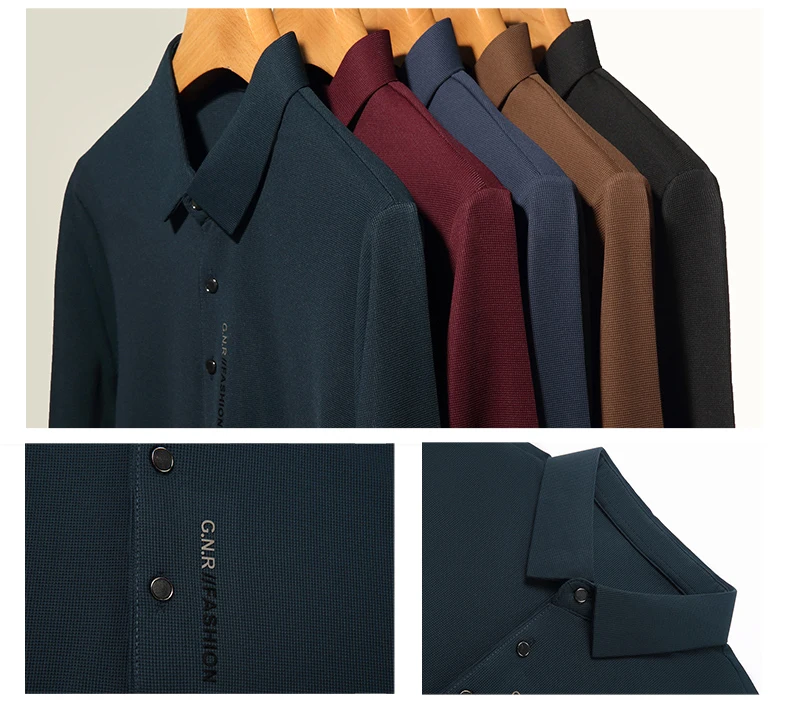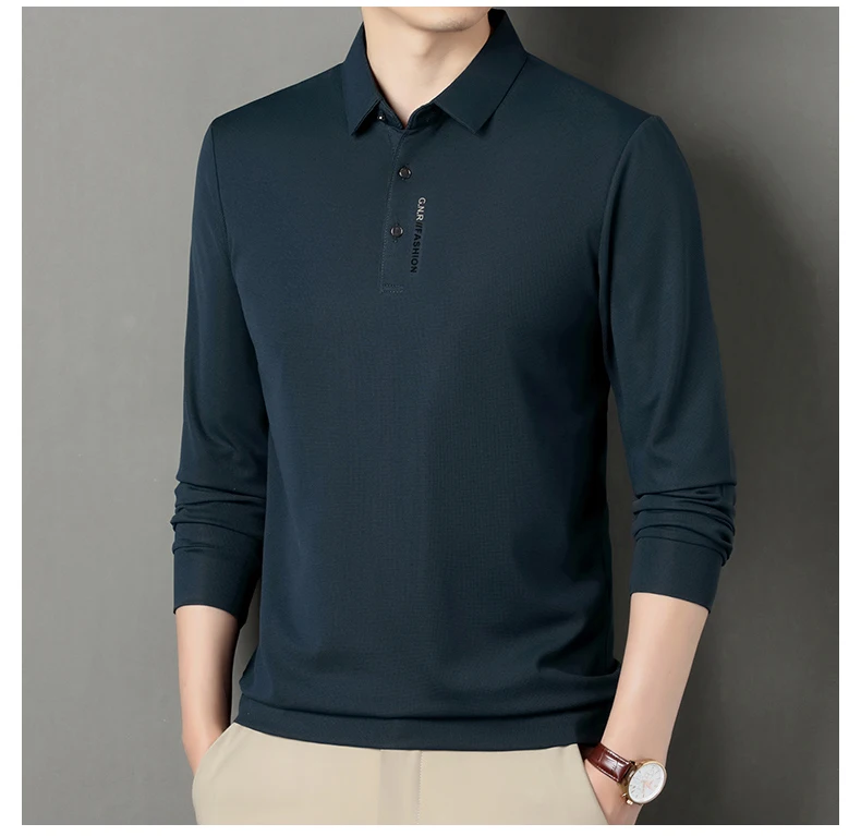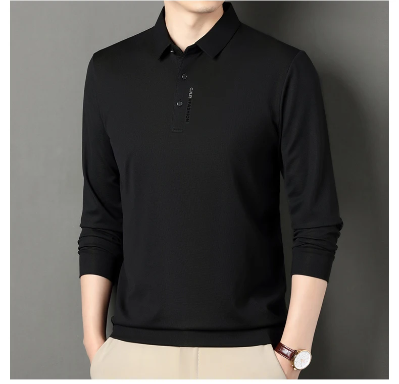Polo con solapa para hombre, camiseta elástica de alta calidad, Top informal de negocios, camisetas clásicas de manga larga, cómodas y ajustadas, otoño