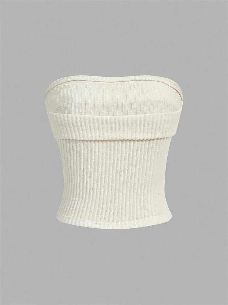 Top de tubo de punto acanalado para mujer, ropa Y2K Grunge Punk lisa sin tirantes, Top corto ajustado sin mangas, camiseta sin mangas, ropa de calle 2024