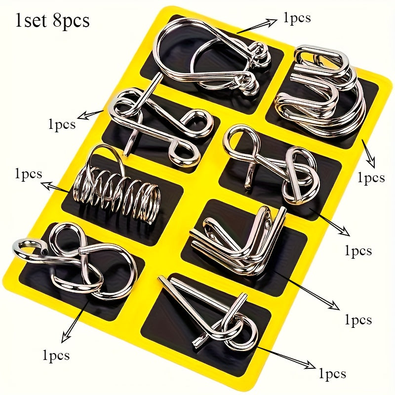 Potencia tu agilidad mental con este desafiante set de 8 juegos en metal de alta calidad. Diseñado para adultos, estos rompecabezas estimulantes desarrollan el pensamiento crítico y la resolución de problemas mientras disfrutas de horas de entretenimiento inteligente. Perfecto para regalos y momentos de ocio que ejercitan tu mente.