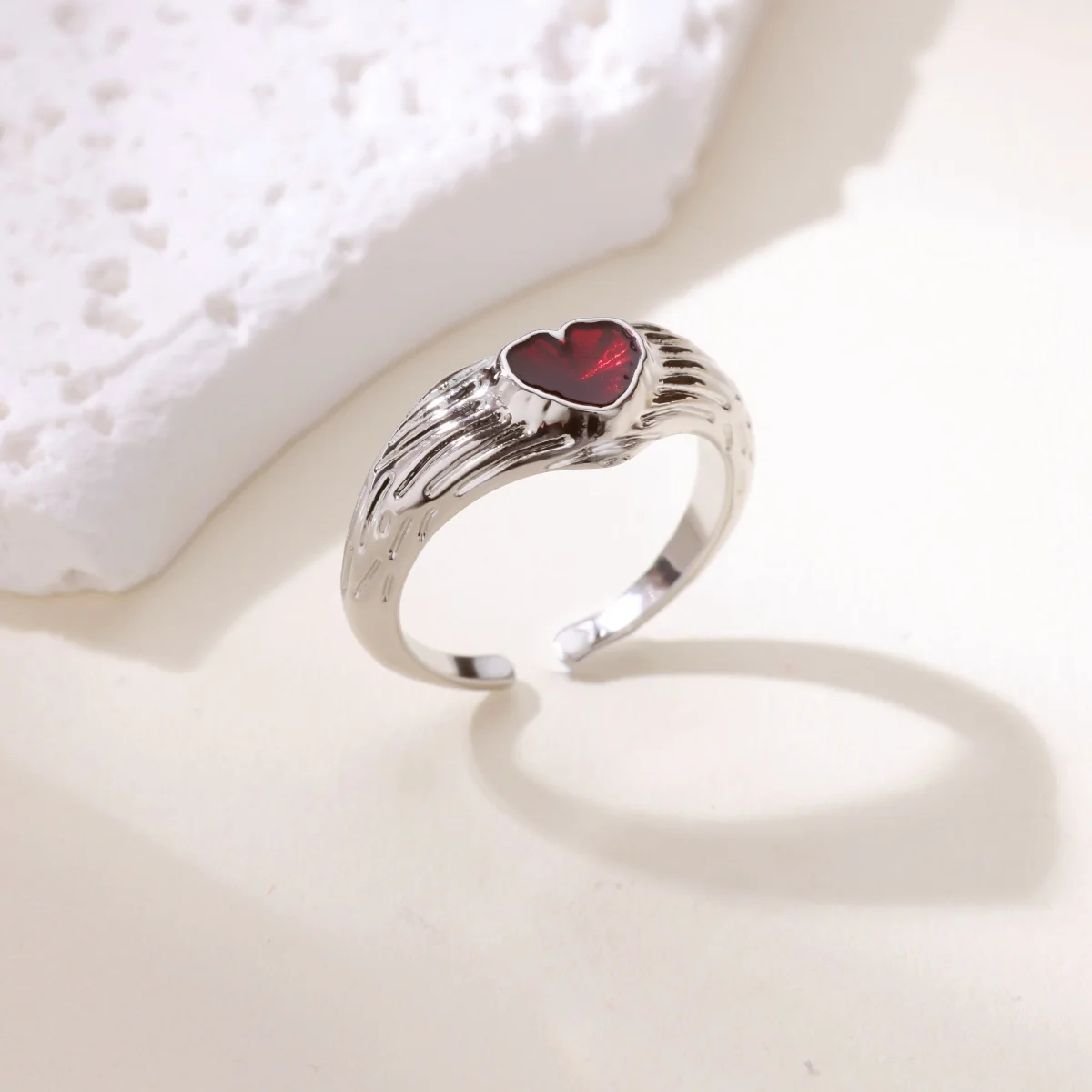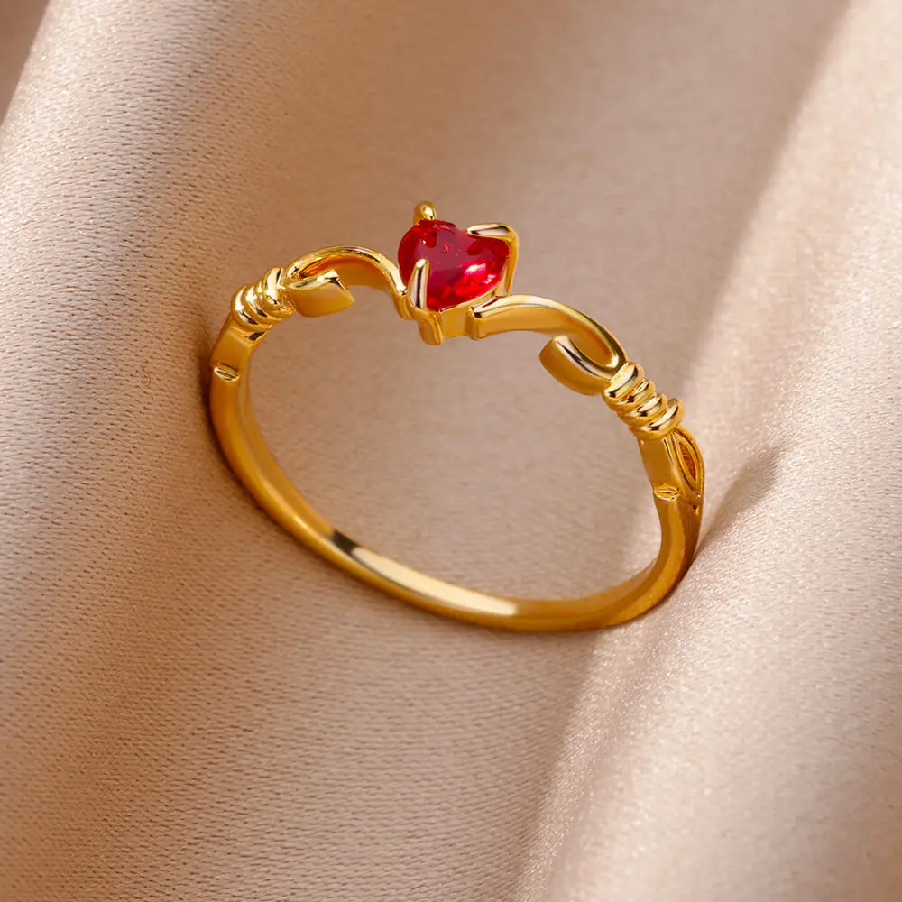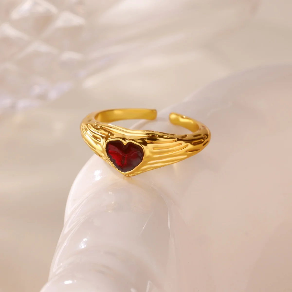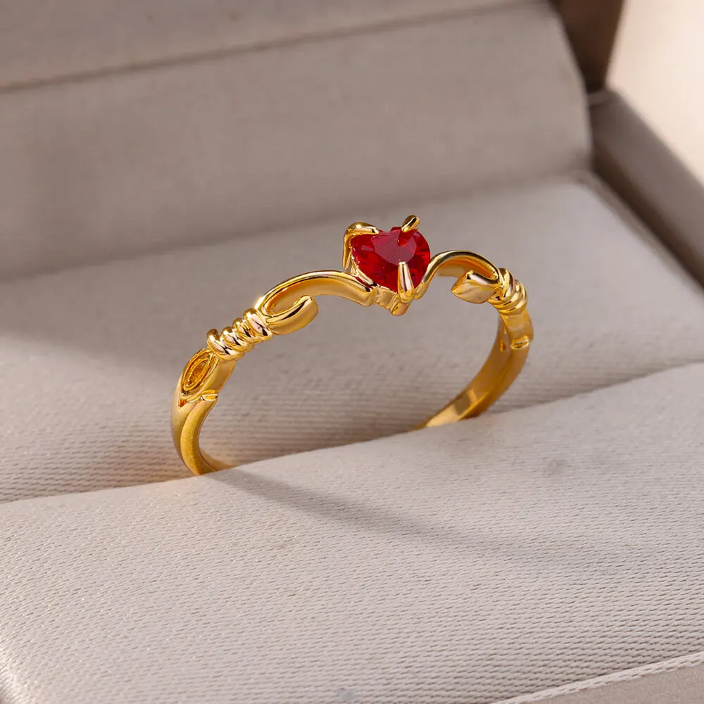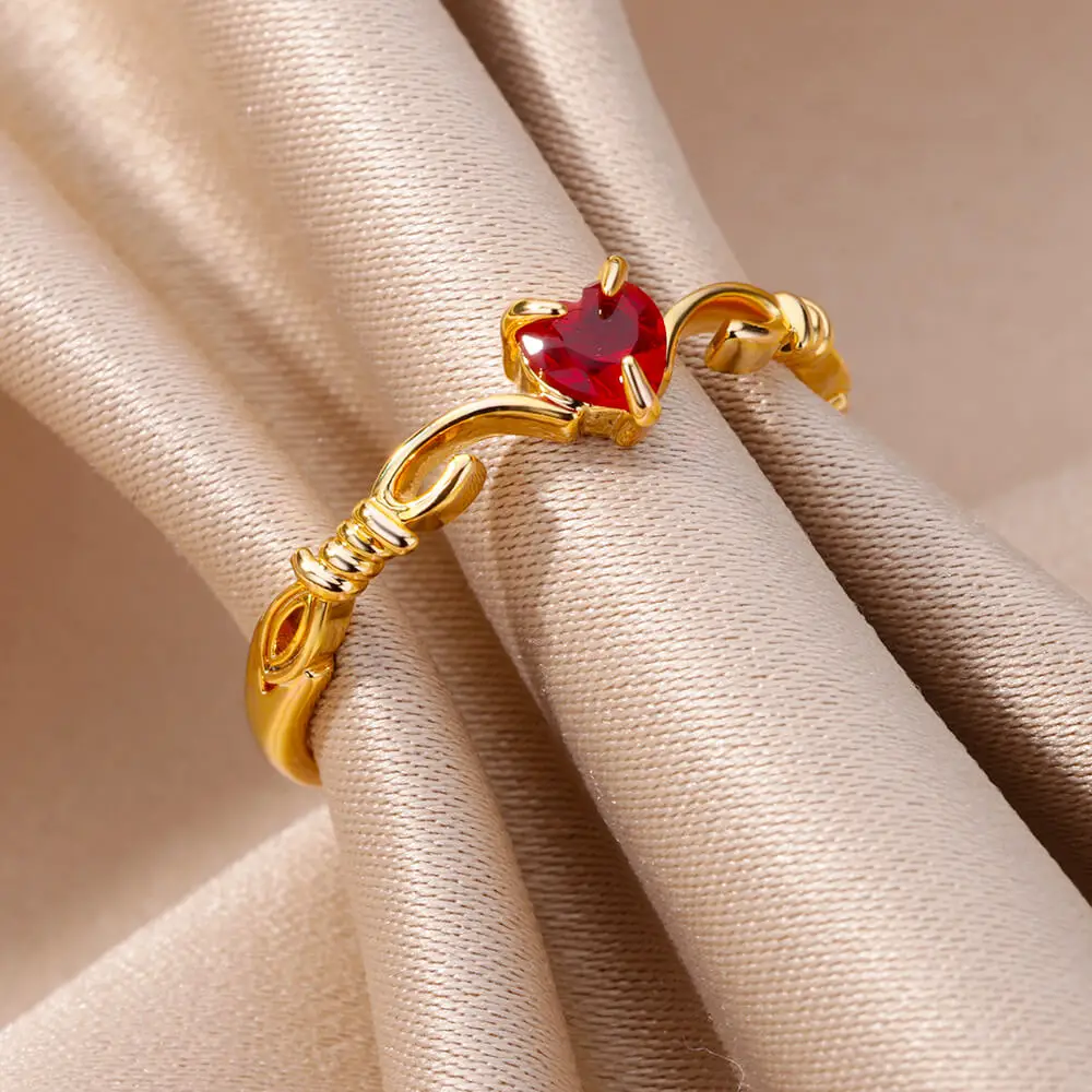 Anillo Ticotrendy Corazón Punk | Circón Rojo | Abierto Acero Inox Oro | Joyería Moda 2025