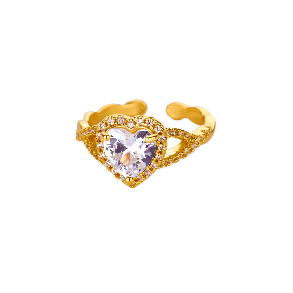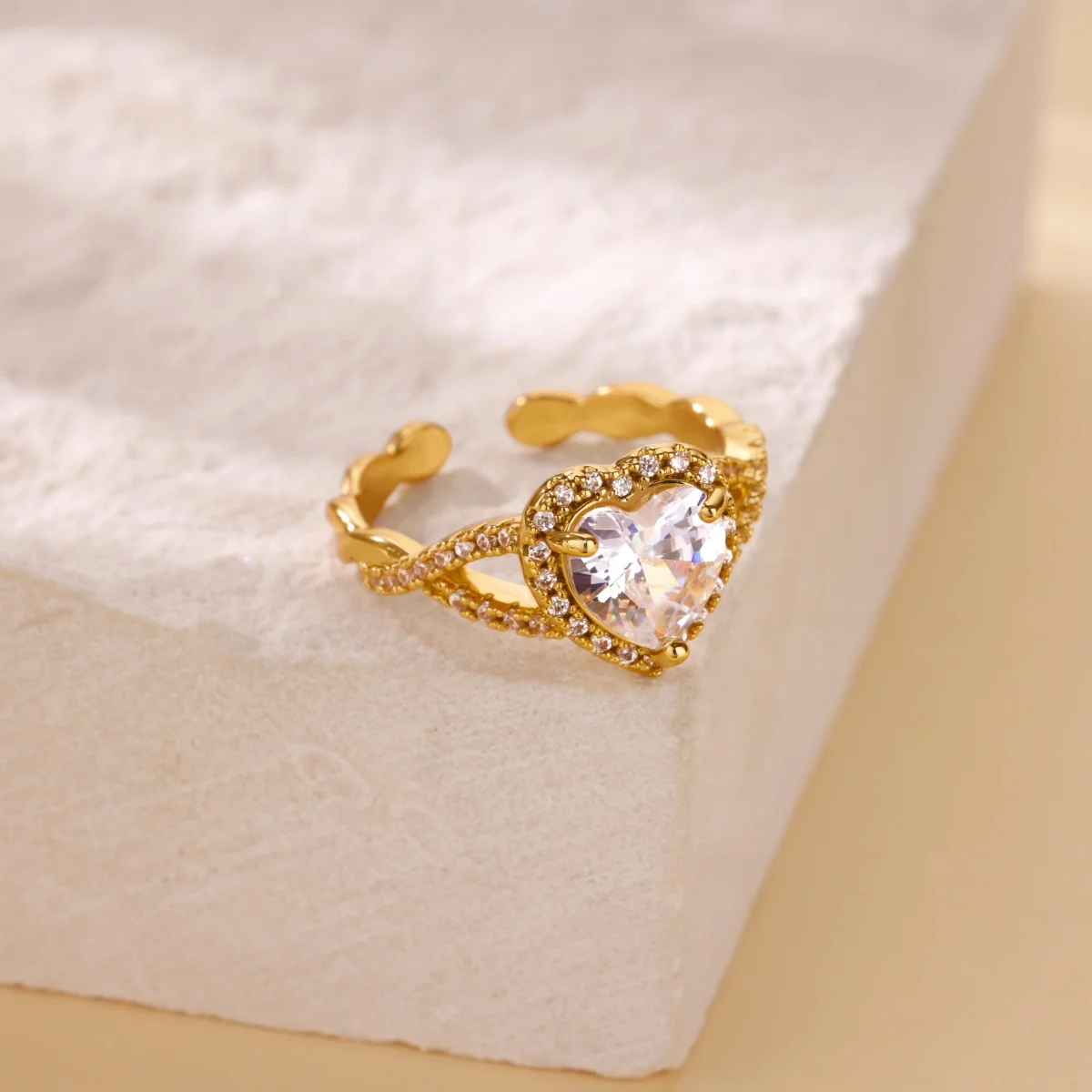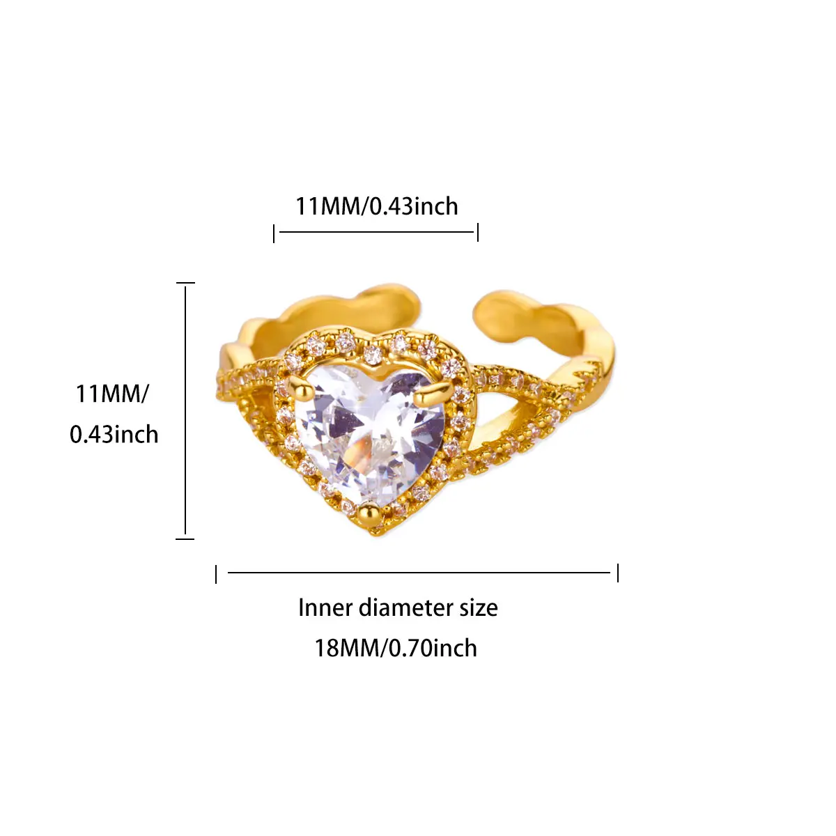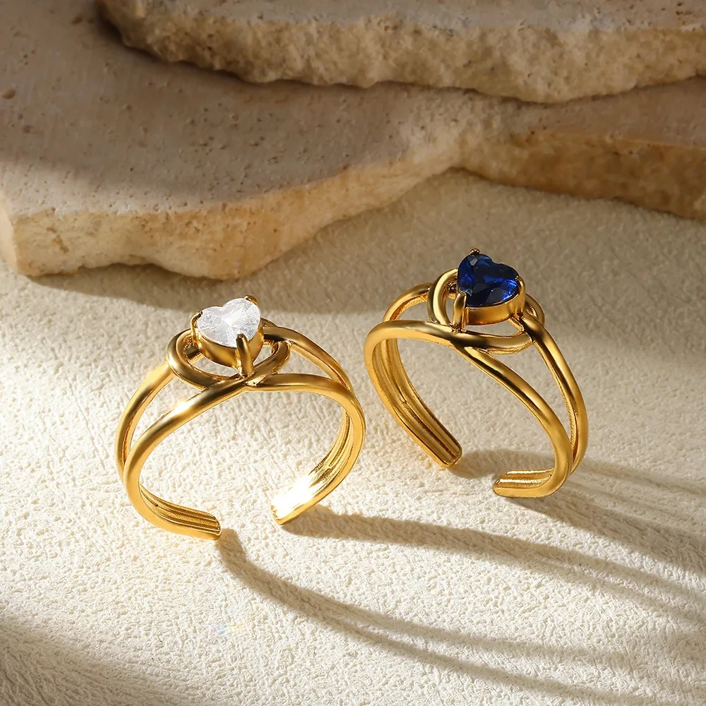 Anillo Ticotrendy Corazón Punk | Circón Rojo | Abierto Acero Inox Oro | Joyería Moda 2025