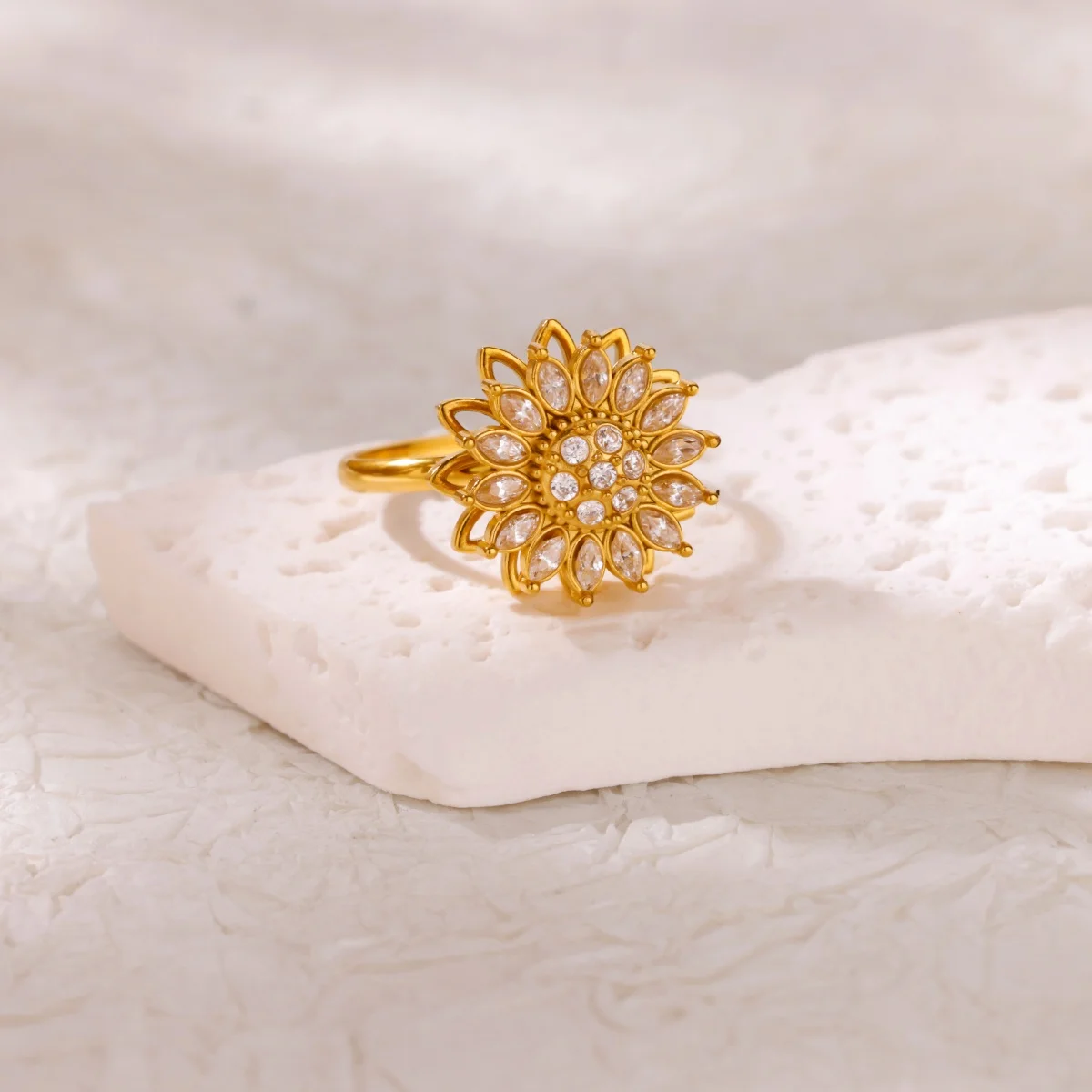 Anillo Ticotrendy Giratorio | Flor de Loto Zirconia | Acero Inox Oro | Joyería Moda 2025