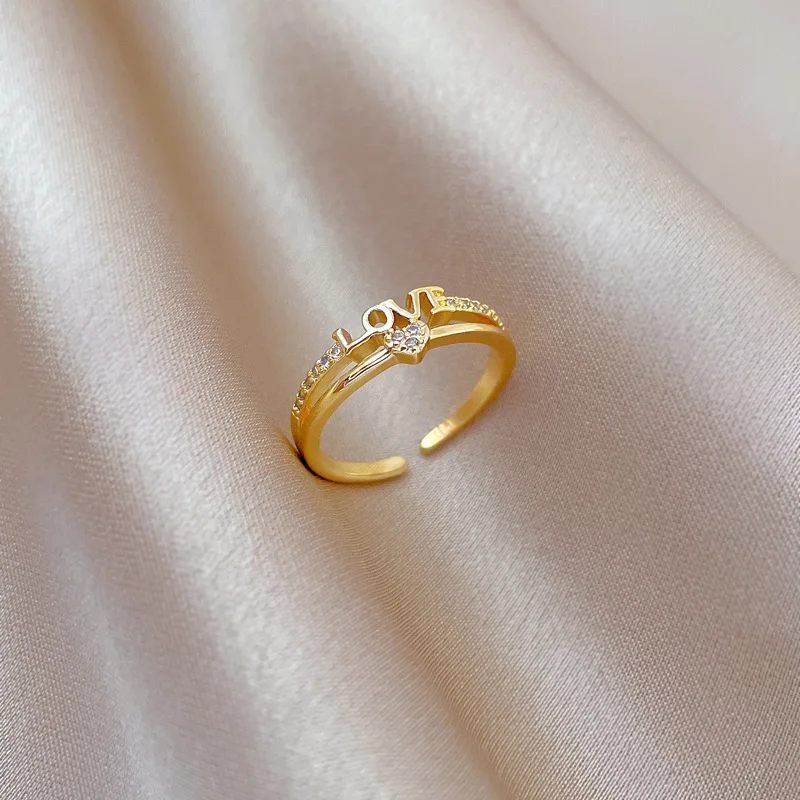 Anillos con letras de amor de circón chapado en oro de 18 quilates para mujeres y niñas, anillo de cobre abierto ajustable dulce, accesorios de joyería, regalos