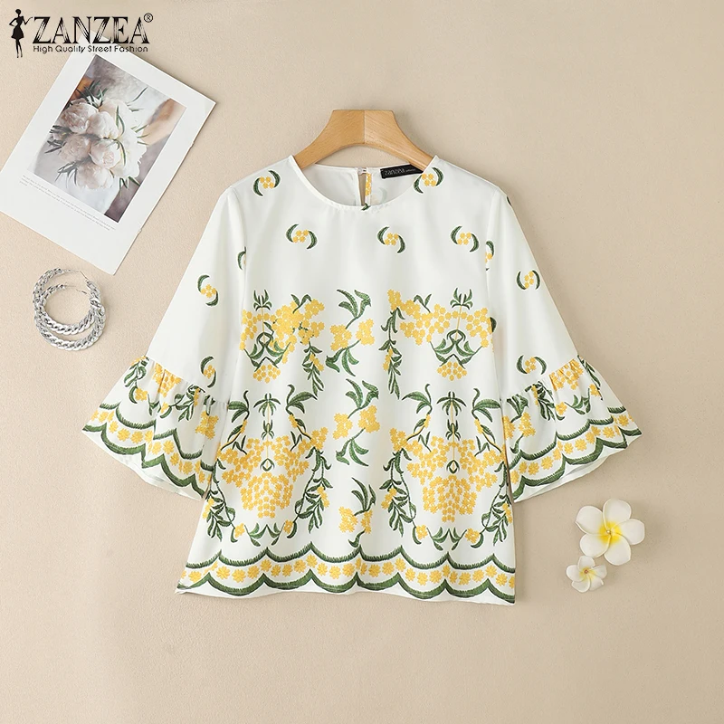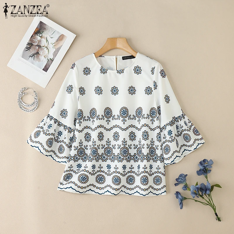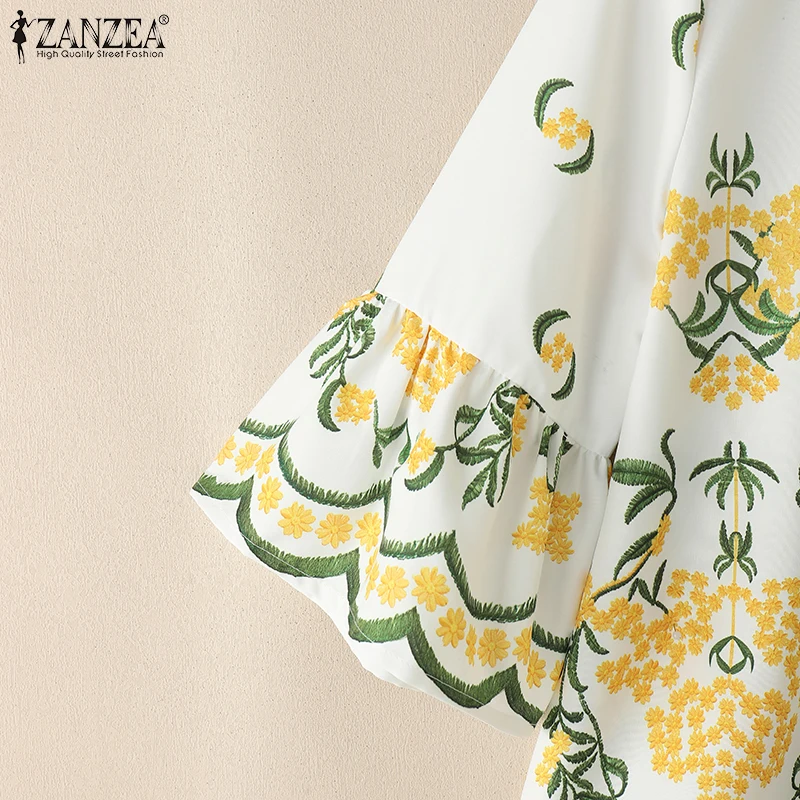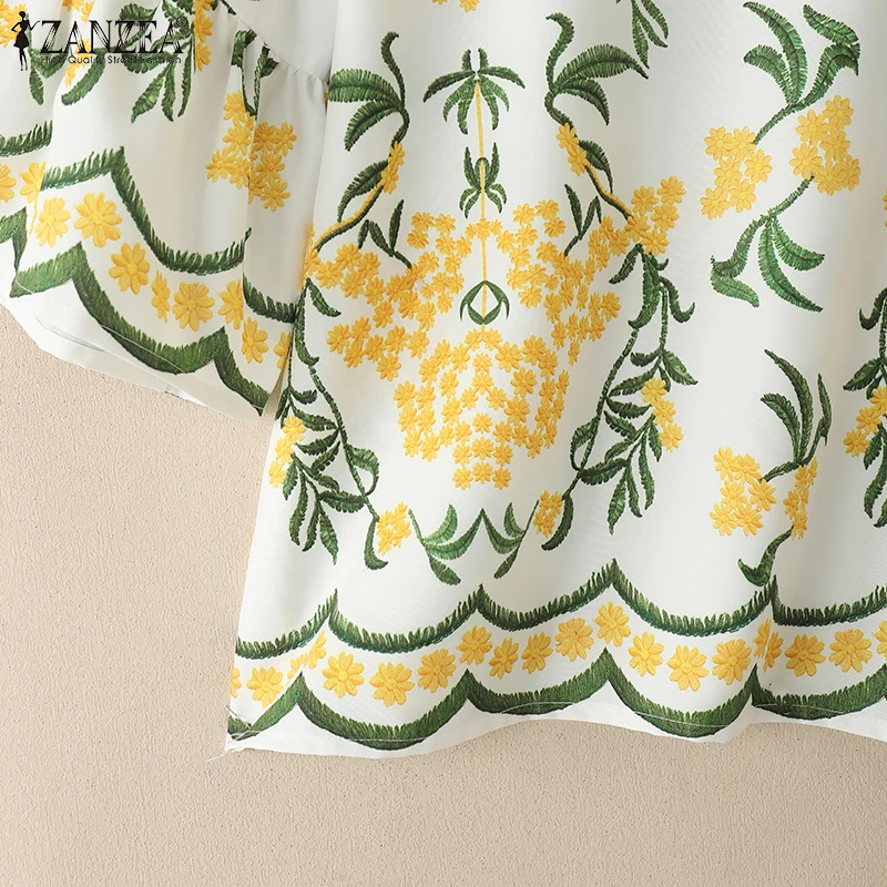 Blusa Bohemia para Mujer | Estampado Floral y Manga Corta | Estilo Vacacional | Ticotrendy
