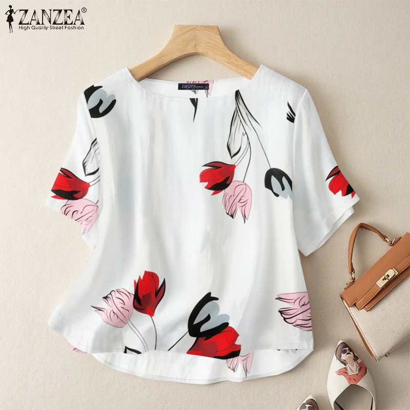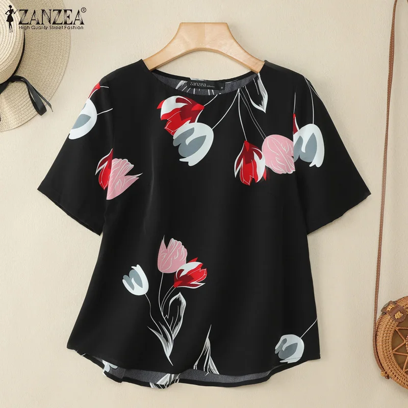 Blusa para Mujer 2025 | Estampado Floral y Cuello Redondo | Oficina y Vacaciones | Ticotrendy