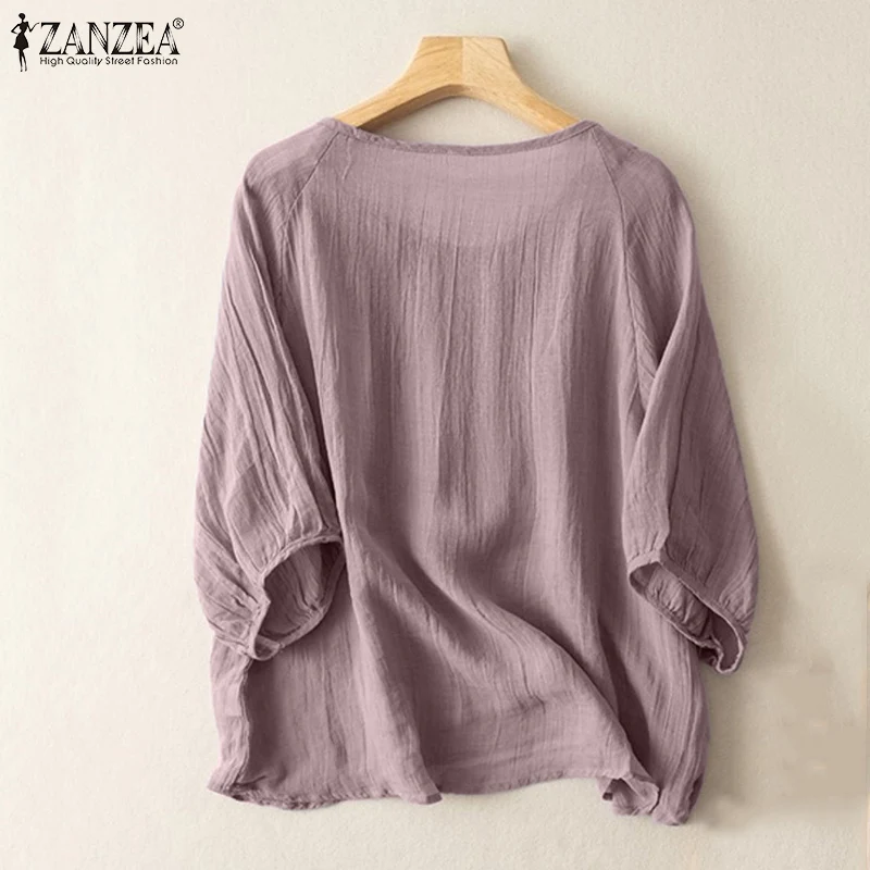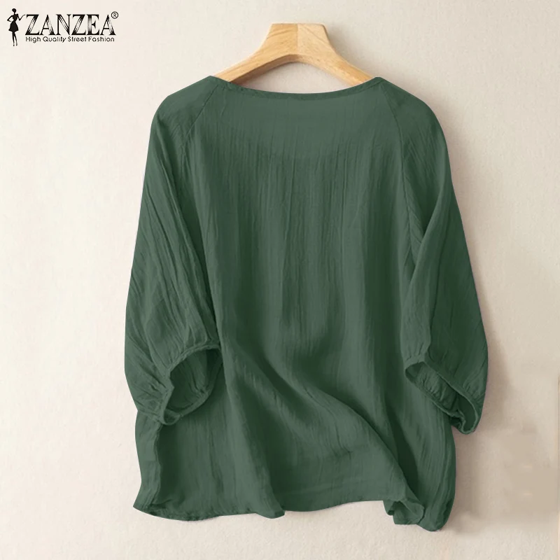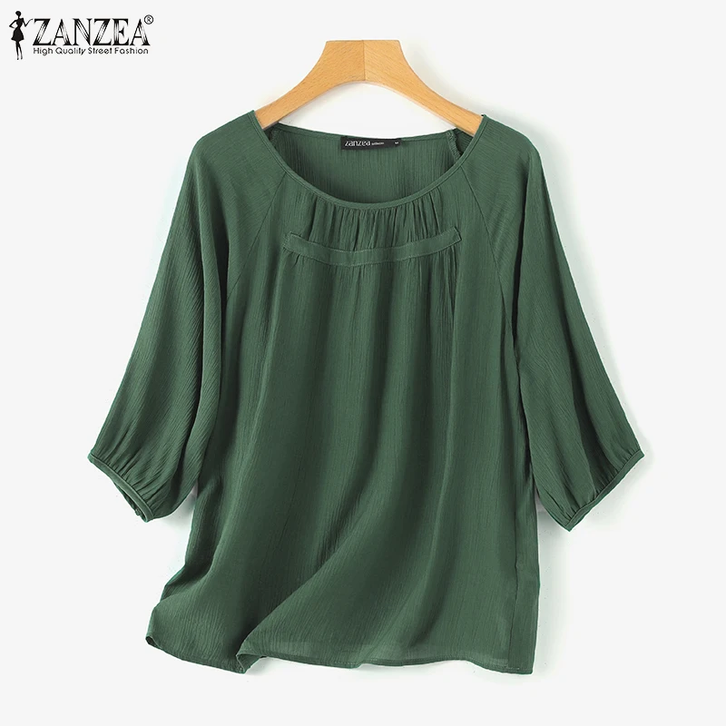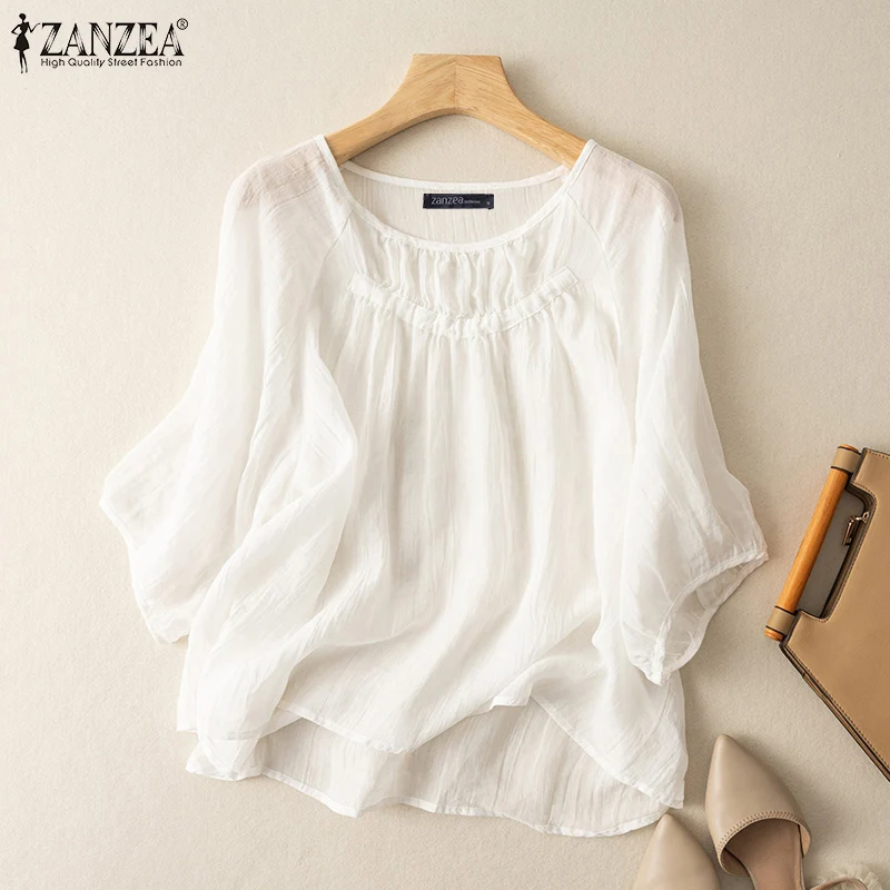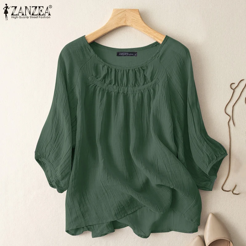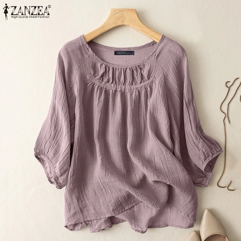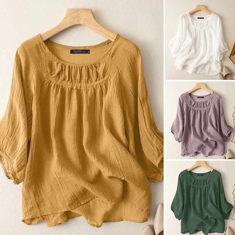 Blusa Vintage para Mujer | Manga 3/4 y Cuello Redondo | Estilo Túnica Holgada | Ticotrendy