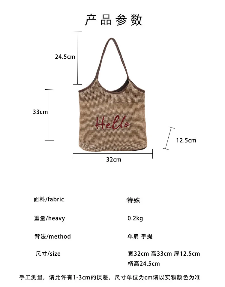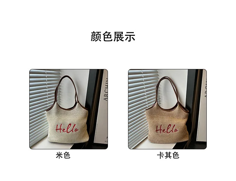 El bolso de hombro de paja para mujer combina estilo natural y funcionalidad, ideal para quienes buscan un accesorio ligero, portátil y con gran capacidad. Perfecto para trabajo, universidad o salidas casuales, su diseño tejido con bordado de letras aporta un toque elegante y moderno.