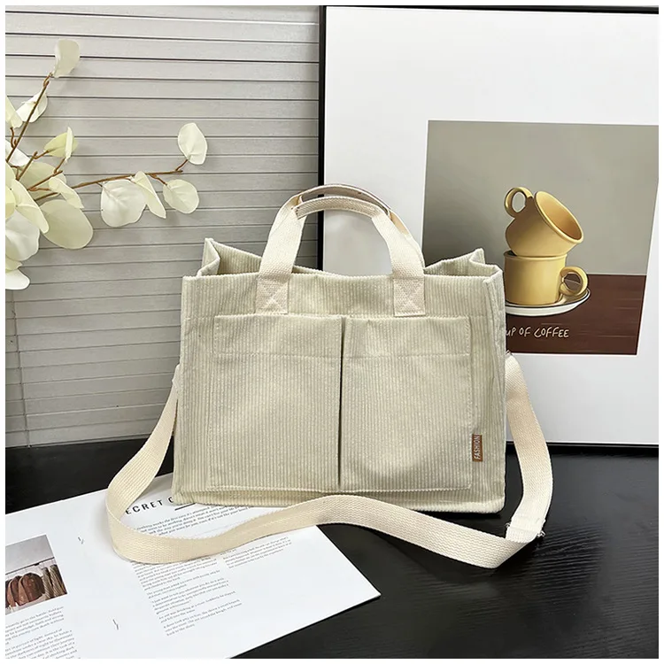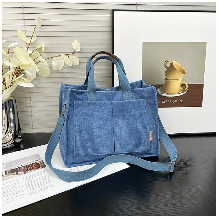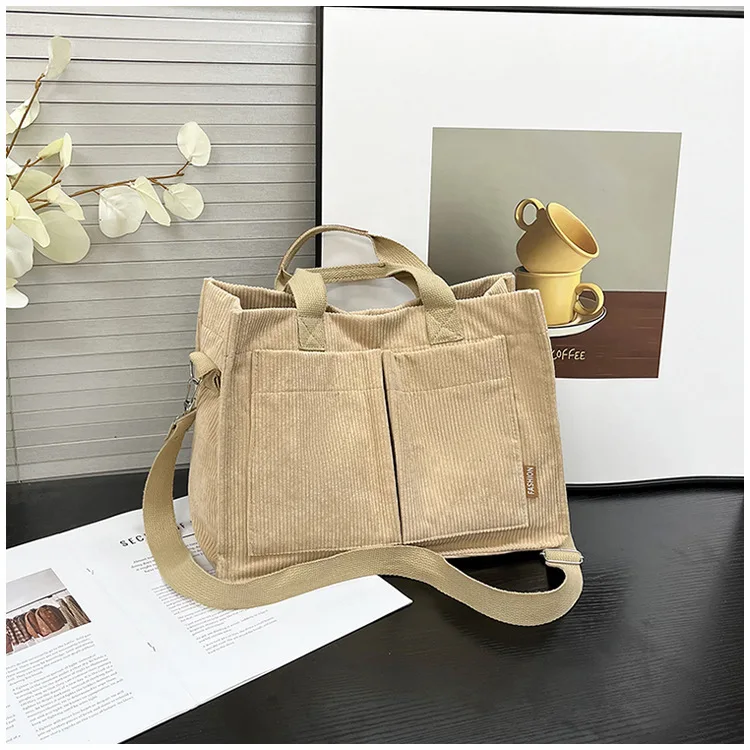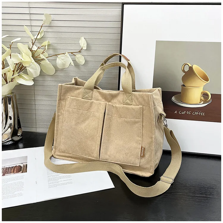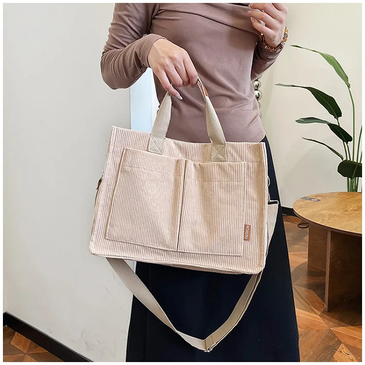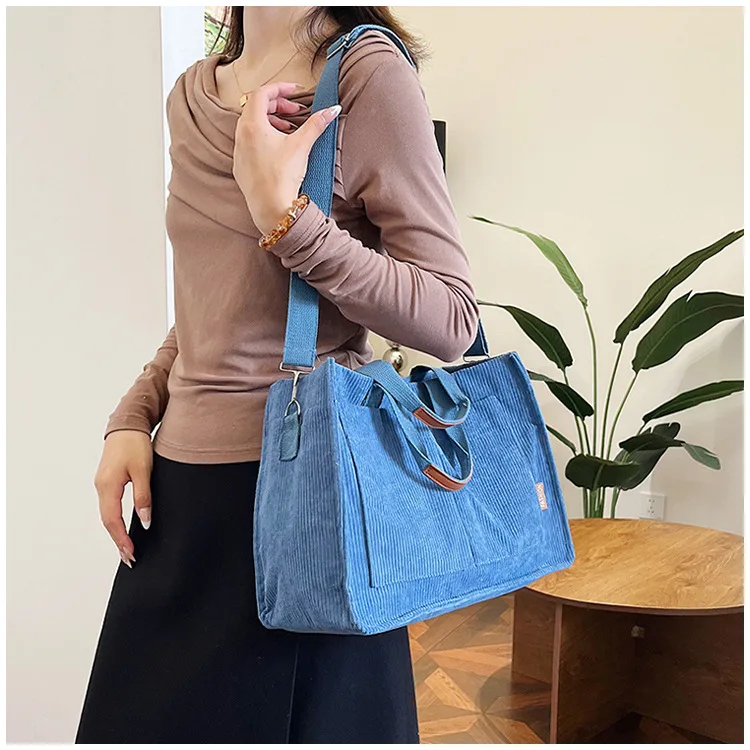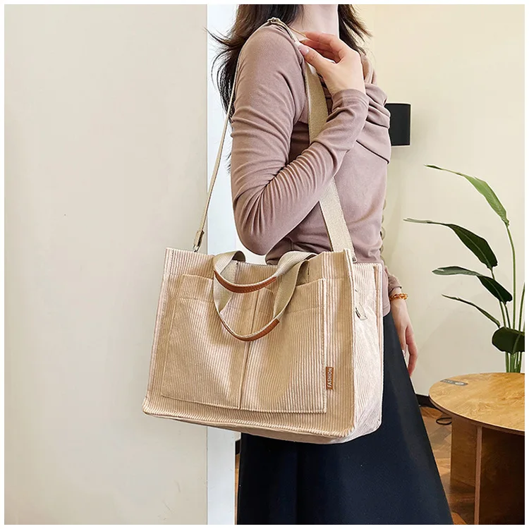 Bolso de hombro de pana Simple para mujer, bolso de mano de gran capacidad, bolso de mensajero, bolso de bolsillo de viaje para mujer