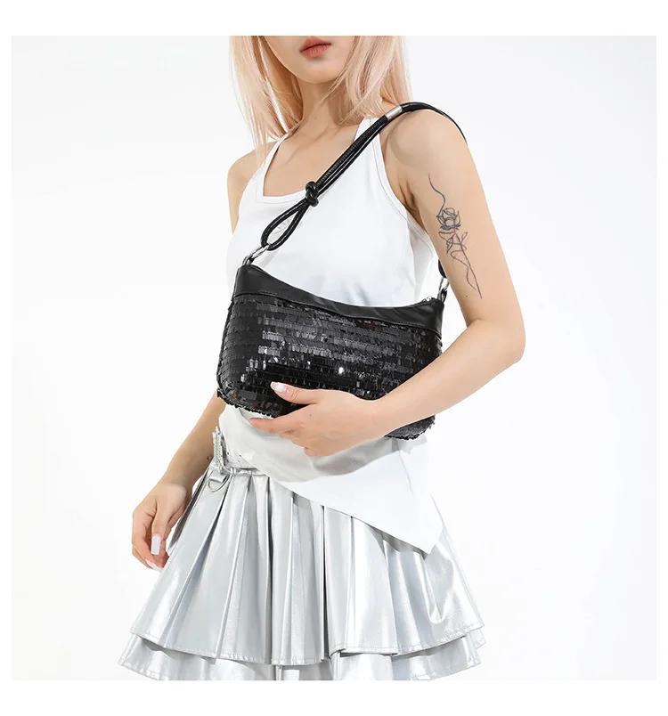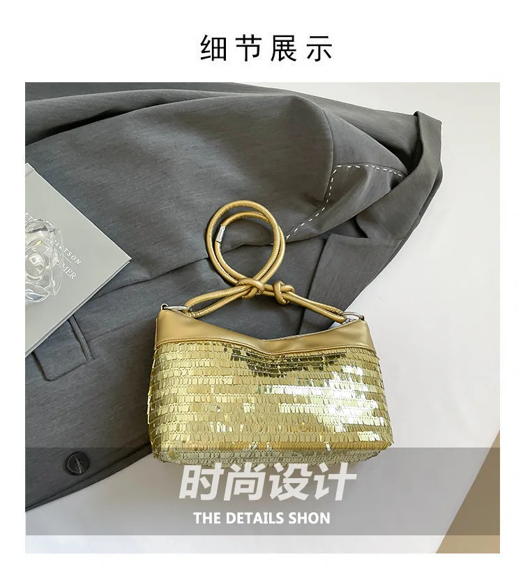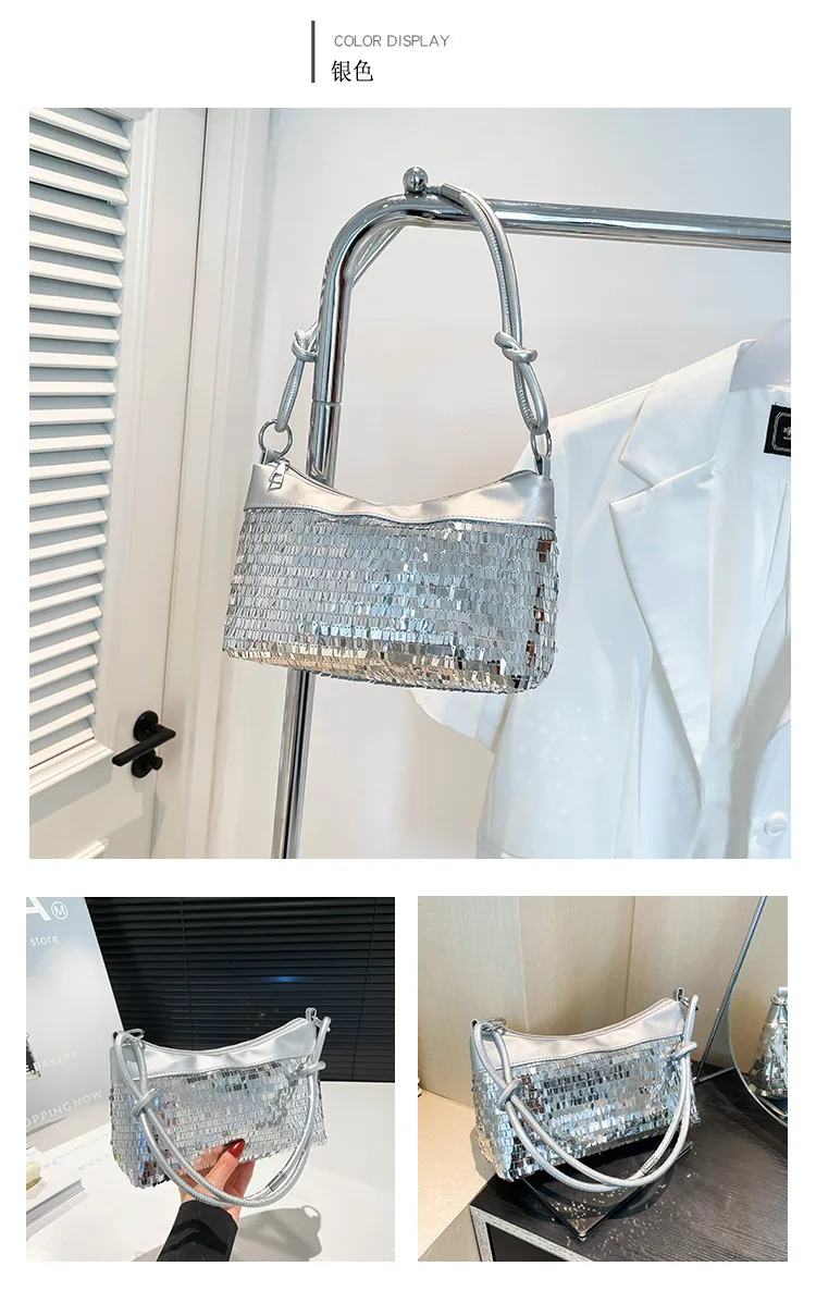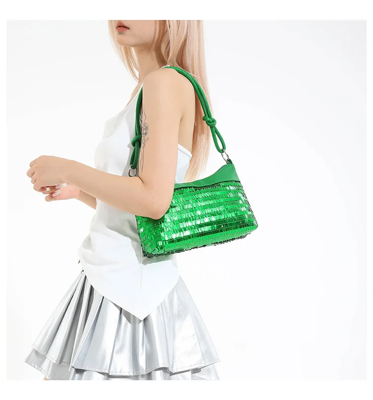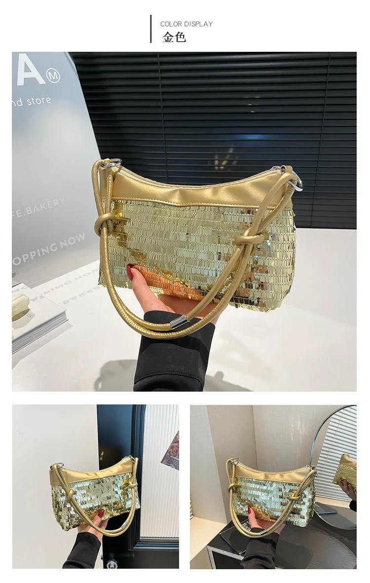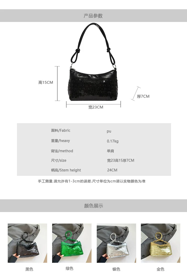 Bolsos de hombro informales con retales de lentejuelas para mujer, bolsos sencillos y versátiles para ir al trabajo, Color sólido, bolso para axila para chica