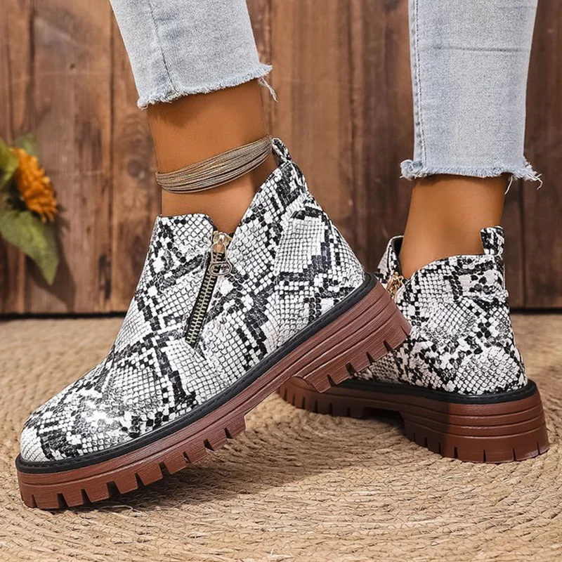Botines de Plataforma | Estampado de Serpiente | Punta Redonda Elegante