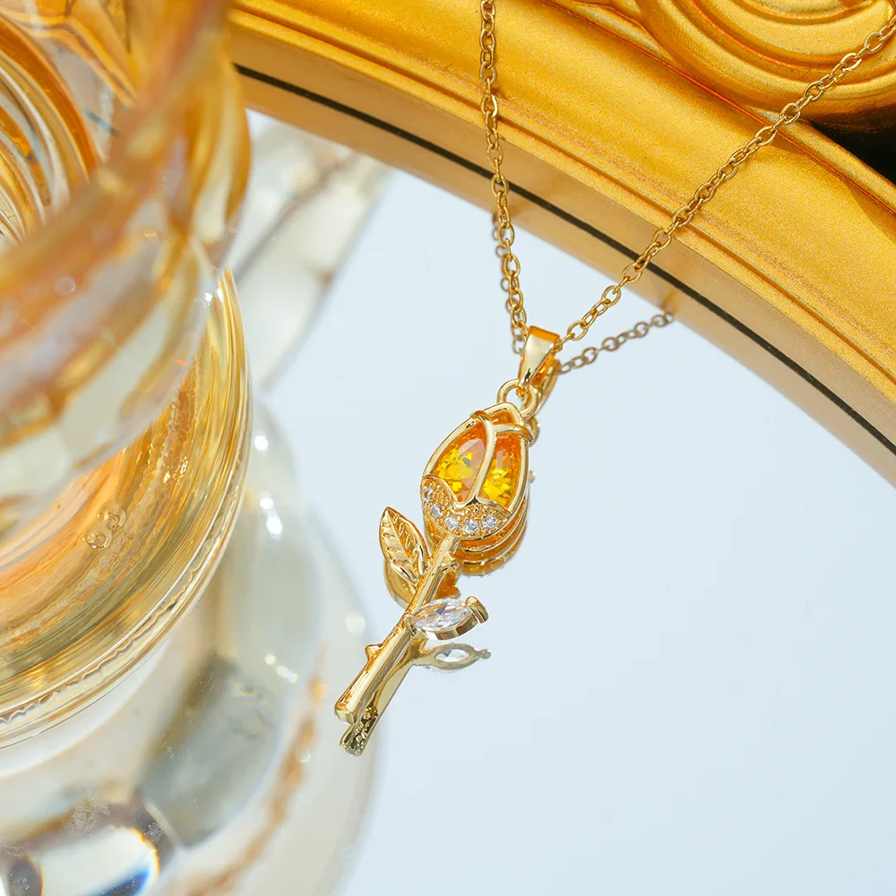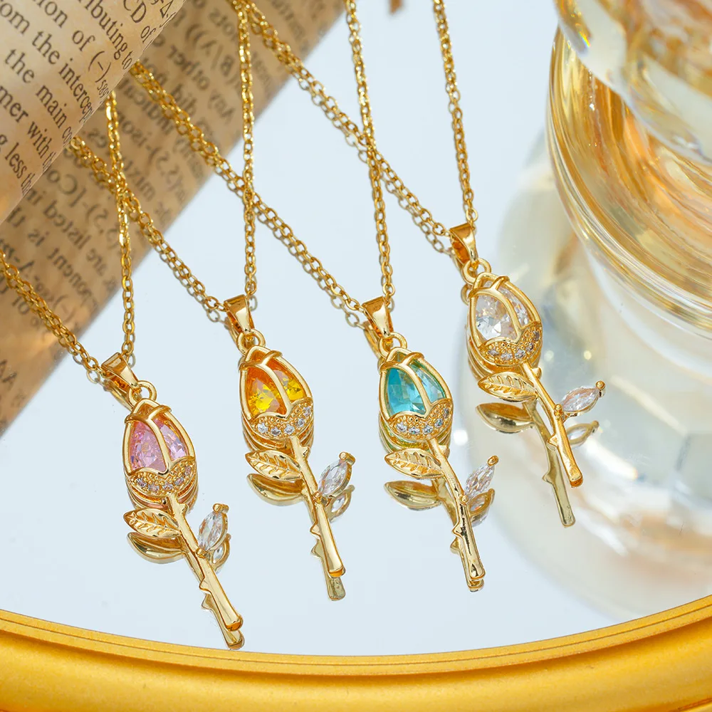 Cadena de acero inoxidable para mujer y niña, collares con colgante de flor de tulipán de circón de lujo a la moda, accesorios de Collar elegantes, regalo de joyería