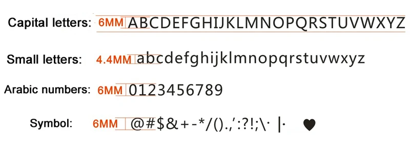 Cada área de grabado puede grabar hasta 15 letras (incluidos inglés, números y símbolos)