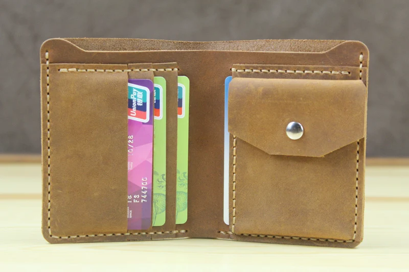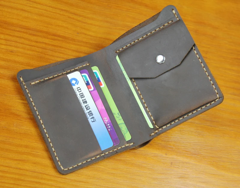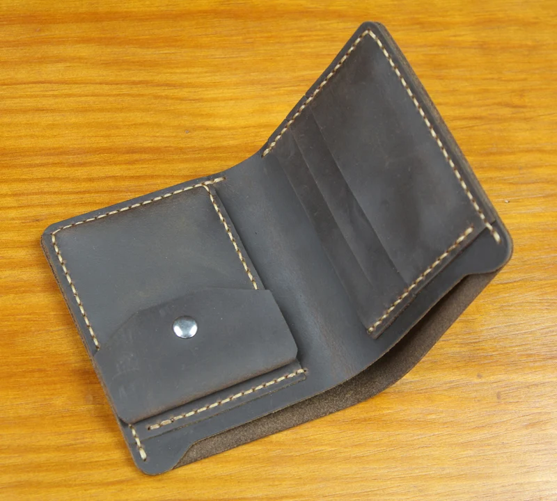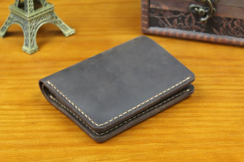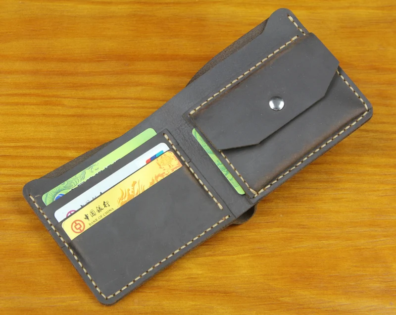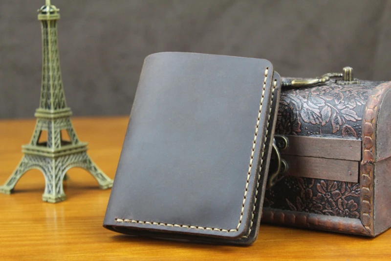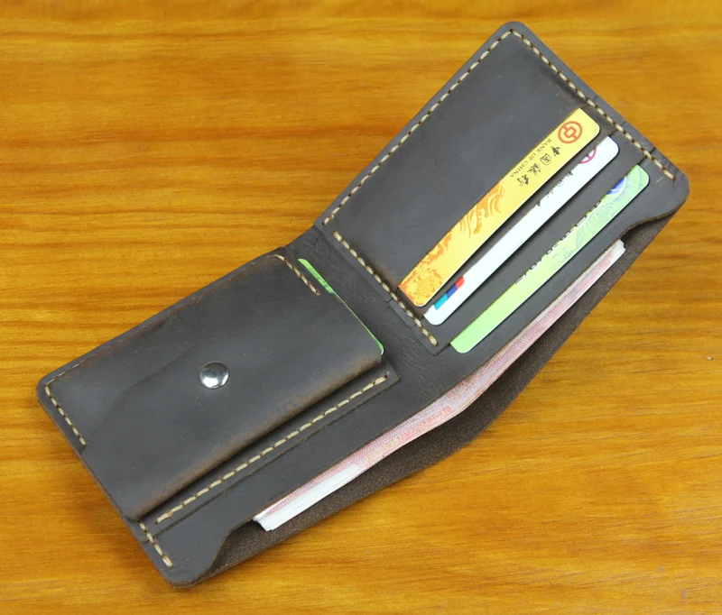Cartera de cuero genuino Vintage hecha a mano de plena flor Crazy Horse para hombre, bolso de mano, monedero para hombre, monedero
