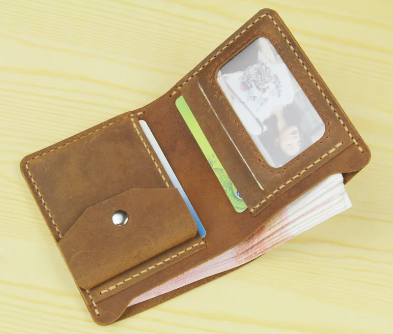 Cartera de Cuero Crazy Horse para Hombre | Hecha a Mano | Clips de Cuero | Bolsillo Vertical