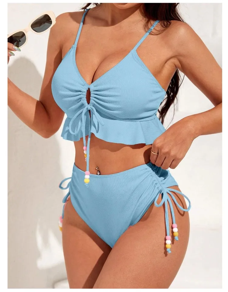 Bikini con Cordón y Volantes - Traje de Baño Sexy para el Verano Tico