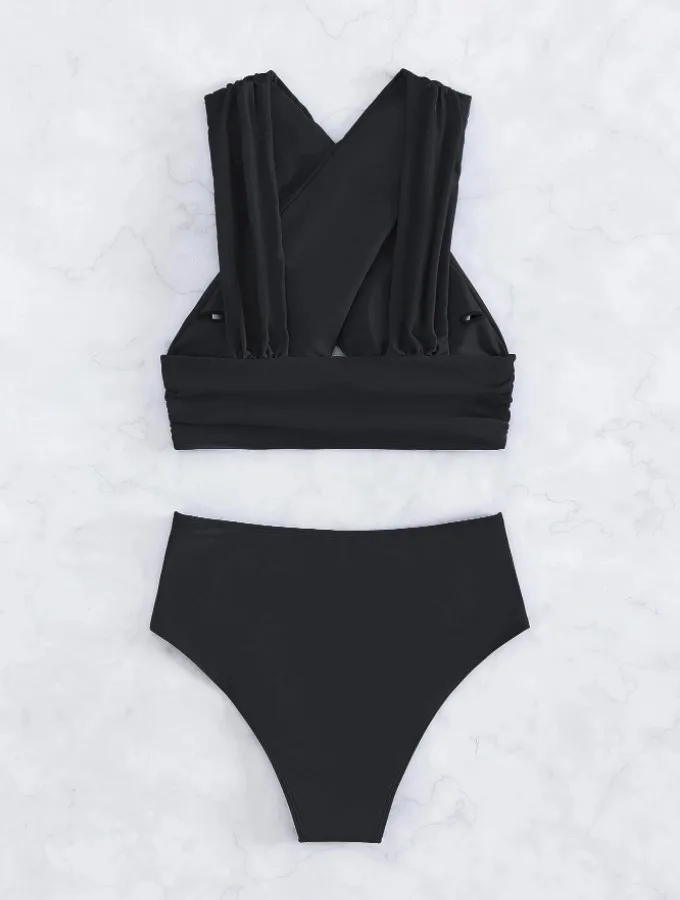 Bikini de Cintura Alta con Pliegues Cruzados - Traje de Dos Piezas