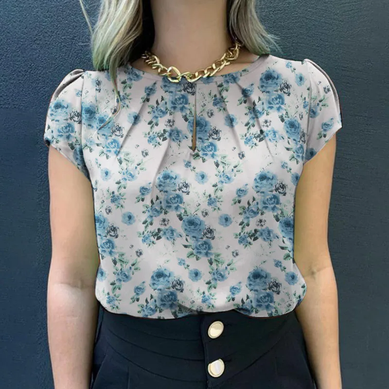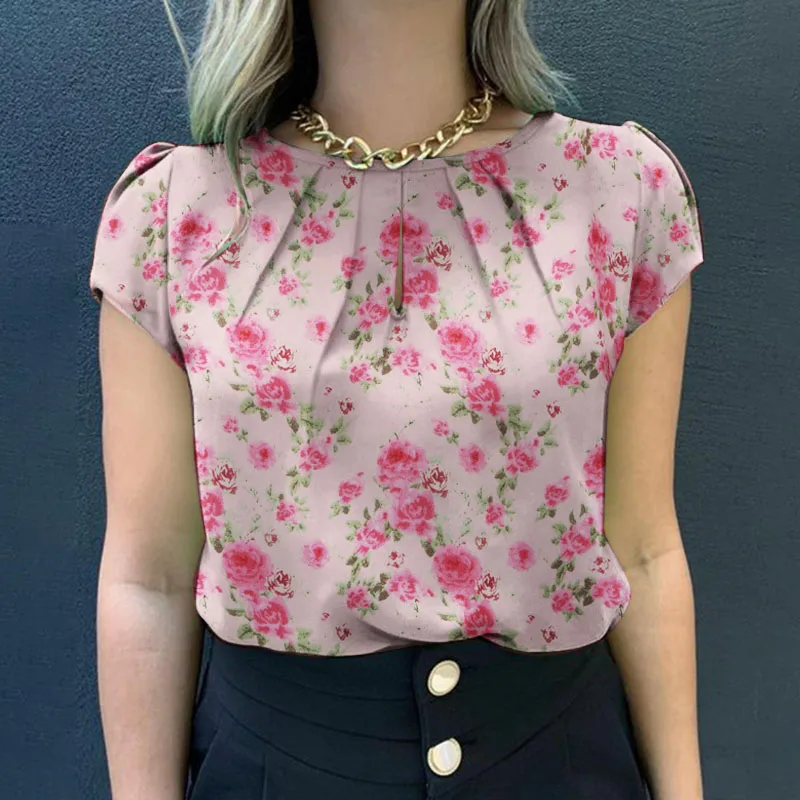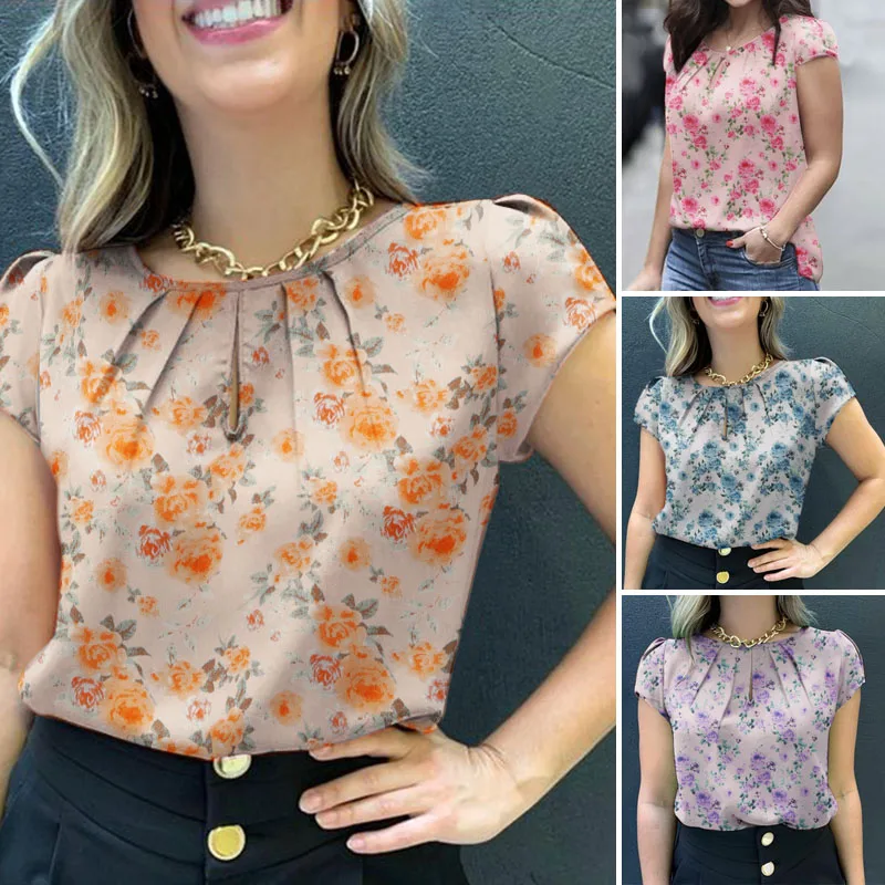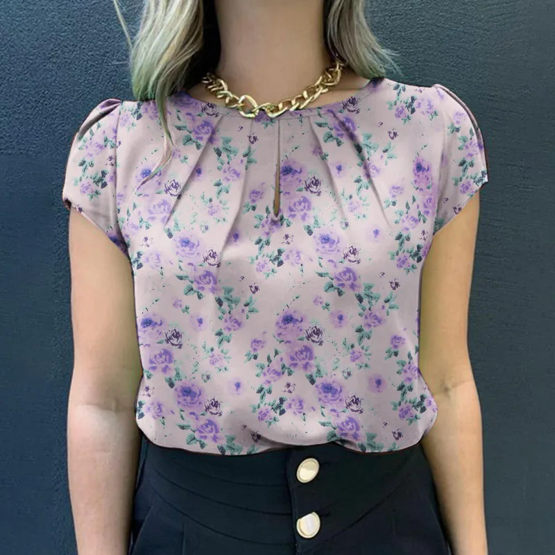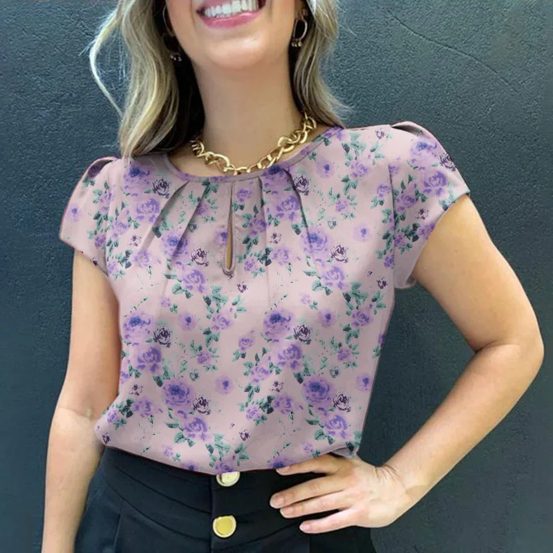 Blusa de manga corta con estampado | Floral para mujer | camisa informal de estilo bohemio