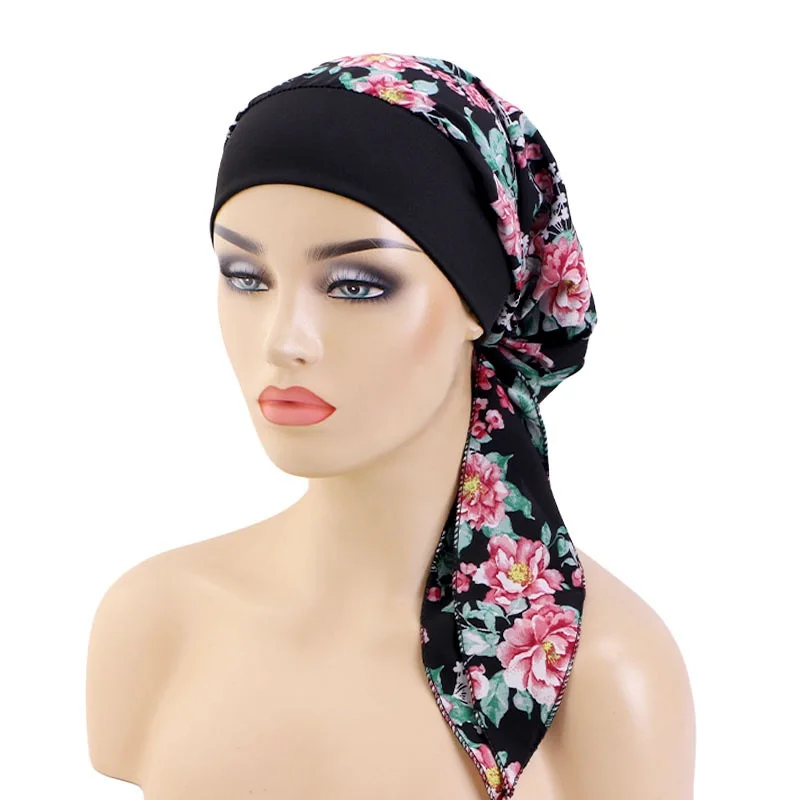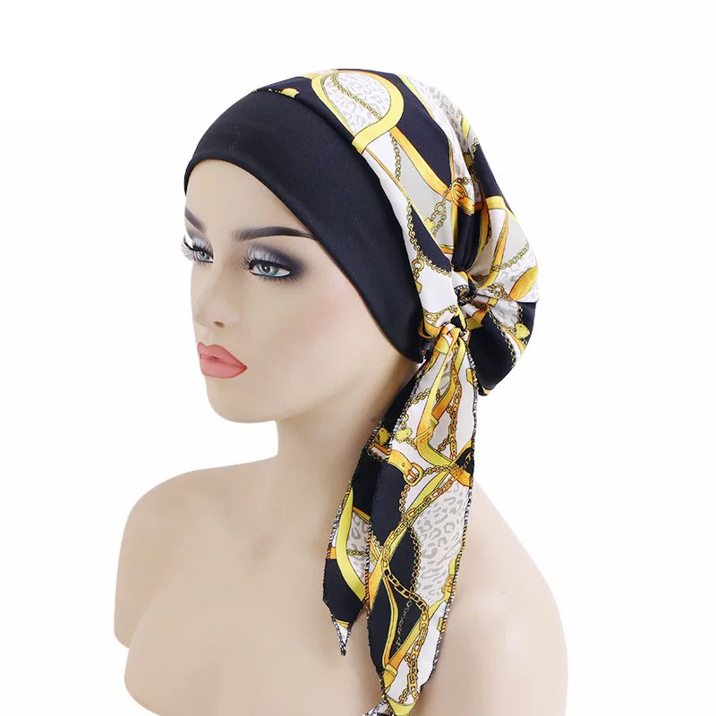 Nuevo pañuelo para la cabeza con estampado satinado para mujer, turbante musulmán elástico preatado, gorro para dormir para quimioterapia, cubierta para la pérdida de cabello, pañuelo para la cabeza