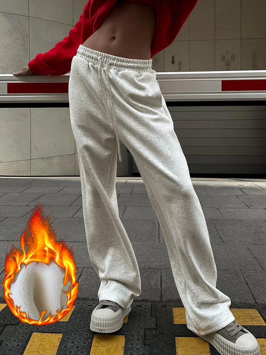 Pantalón Pierna Ancha Lana Terciopelo | Grueso Beige/Gris | Cintura Alta Vintage | Invierno | Ticotrendy