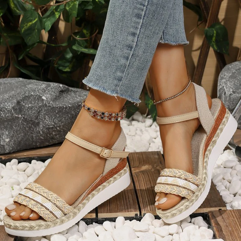Sandalias de Cuña | Plataforma Trenzada | Estilo Bohemio | Mujer