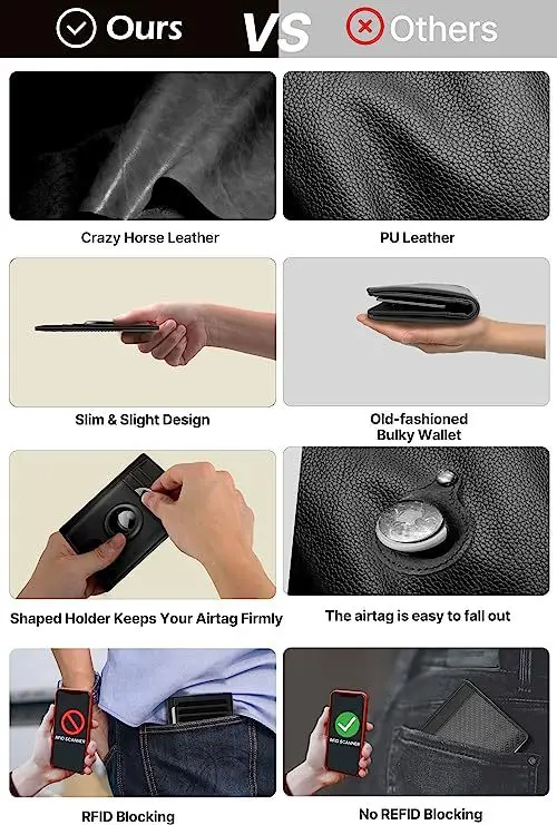 Tarjetero Airtag para hombre, cartera RFID antirrobo de cuero genuino, funda para tarjetas de crédito y identificación, funda para hombre de alta calidad