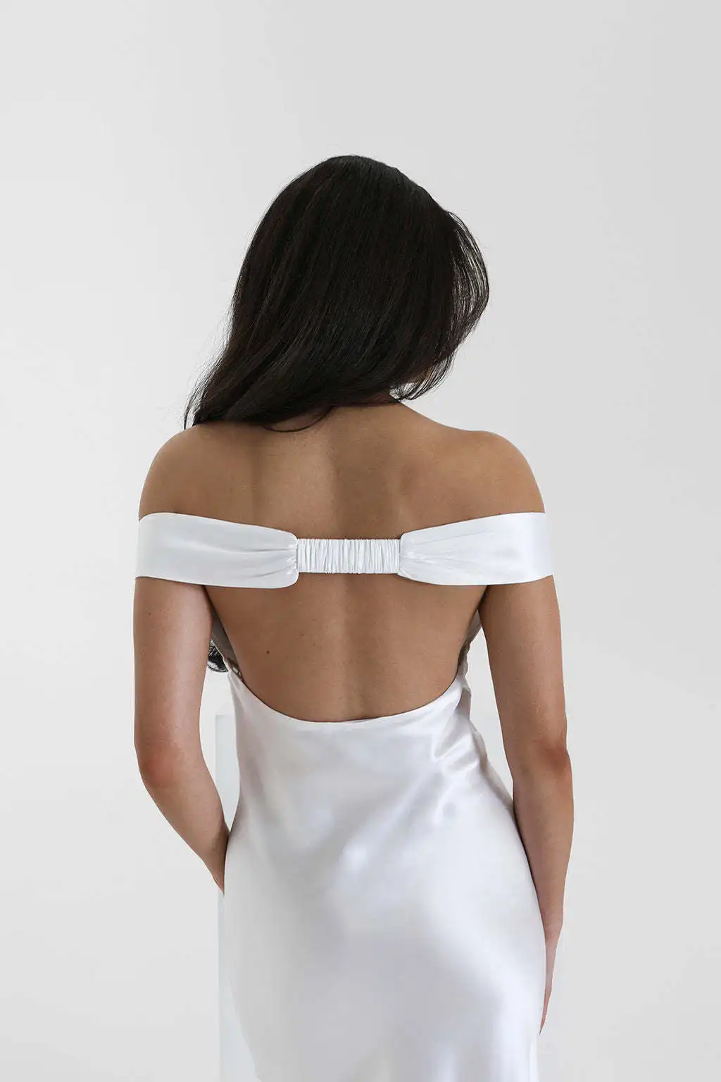 Vestido largo de satén con lazo y espalda descubierta para mujer